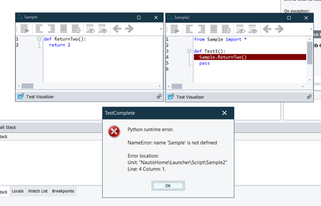 I have two script units in Python. I want to import functions from one to another. I am following the steps mentioned in this page. I made this simple test, but I am always getting `NameError: name...