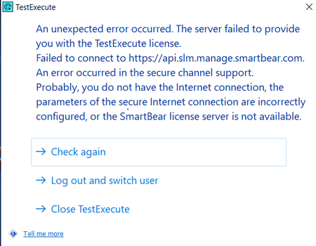 Since today, I have been facing issues while trying to execute through Test Execute. It was working fine until yesterday. Could you please suggest what is causing below error? Thanks       ...