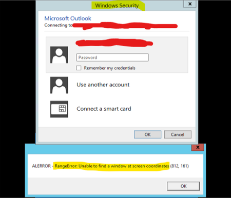 So, basically, when we utilize the Sys.Desktop.ObjectFromPoint method passing the coordinates of an object within the Windows Security popup, then an exception is raised as that method is not able to identify the window we're spying (as picture in my first message).