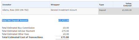 Hi all Kindly refer to the below screenshot. I simply want to prove that 'value entered (£2500)' Less 'total estimated adviser payment (£75)' = Total net deposit amount (£2425) Not sure if...