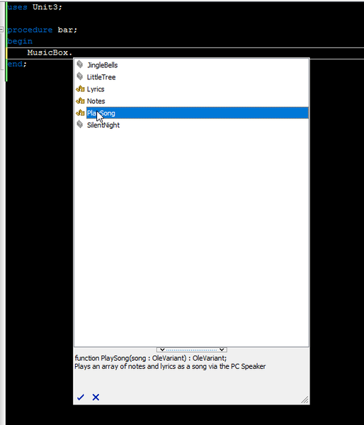 I'm just wondering is there possibility to add hints for code completition so that we can later see parameter documentation easily. I'm using delphi script