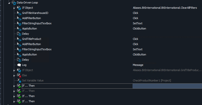 I have a data driven loop, and I am going to check if the product number is a specific product, and it should do the steps I want.