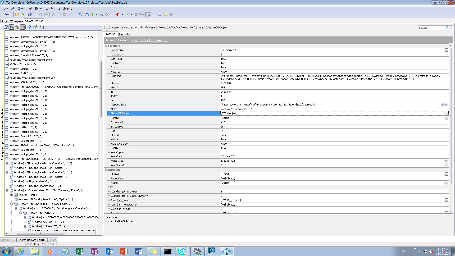 As you mentioned I tried to explore properties under Object Browser still hard luck i couldn't find any method or properties of NativeCPPObject if I'm Clicking on ellipse button. I'm not sure what is debug version of application as our team is completely new on TestComplete. I've attached setting of Default Project and also i've attached object browser screenshot.