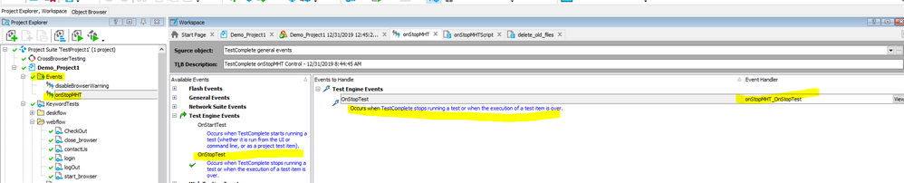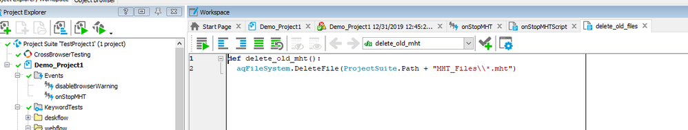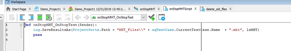 1) OnStopEvent : for creating mht files after the completion of every test case in your project, and saving them into a desired location (you can add event handlers by going to the project level, right click add item, event handler)1.11.2
