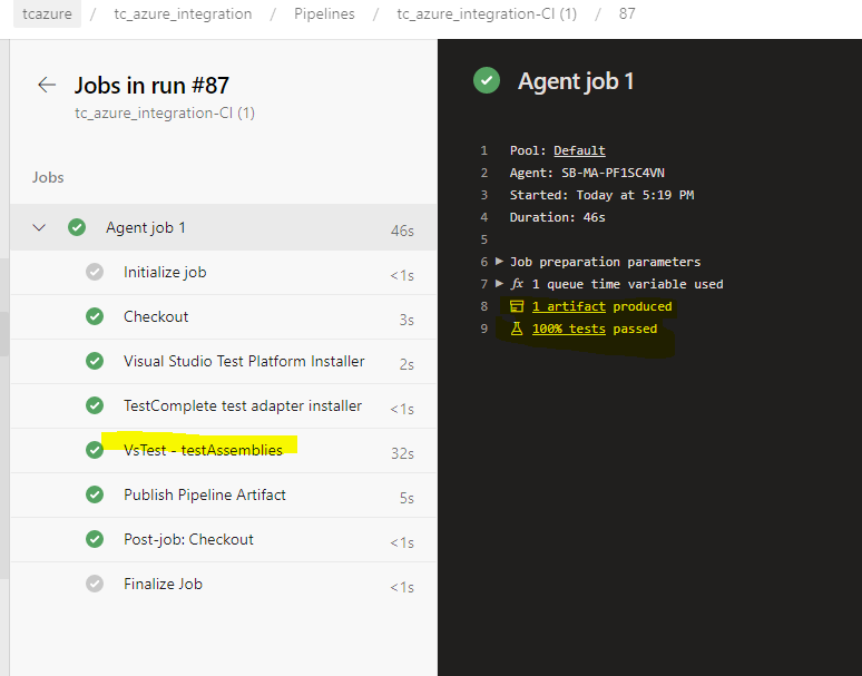 Exec TestComplete Tests using Azure pipeline, and get test results as attachment for each test
