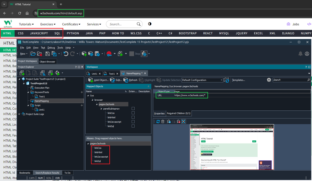 In TC, I've defined the search criteria value for URL as https://www.w3schools.com/*. TC is able to recognise the different pages, because of the wildcard.