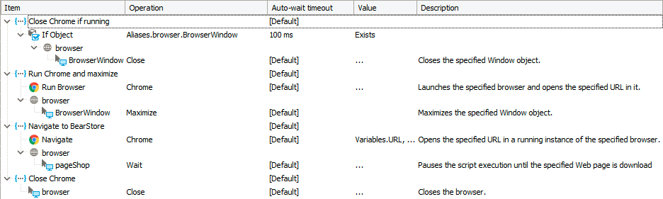 This is how we have the Run Browser configured. The URL is added to the browser from a csv file. We also run a closeBrowser at the beginning of every test case to help clean up any open browsers that might be opened from a previous failed test case.
