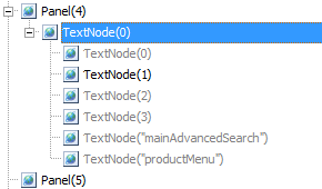 It should be mentioned that Panel(4) is visible-on-screen but TextNode(0) is not, but it's childeren are!