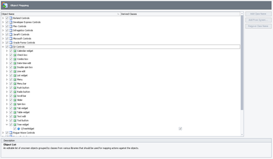 To be more specific about the problem, we have a custom Qt control (or a derived class) which is derived from the base class "QWidget". When I go to "Object Mapping" in TestComplete, I can't find the base class "QWidget" and therefore cannot check the "derived classes" checkbox which may solve my problem. Under "Object Mapping" > "Qt Controls" > "Tree Widget", there is only one object "QTreeWidget".