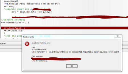 Hello,   After establishing a connection between TestComplete and Db2, I ran a query which didn't return any results. How can I verify if the recordset is null (i.e. not records have been returned...