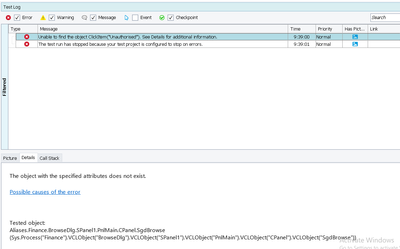 When I'm using ClickItem() method , I'm getting below error. Just to mention I didn't find the ClickItem()method option so I just typed in and it didn't complain