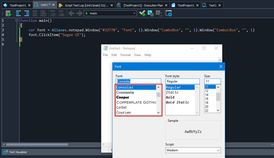 For example, use the Object Spy tool to capture the combo list box (as shown in red), then use ClickItem() method to select the item in the list.