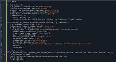 So, once we Run the Testcomplete, it starts from Driverscript then goes to Runordersheet routine in that if Execution values is Yes then it goes to the Datasheet routine, here if the condition is true then it goes to the Execute line with collective data (Execute TC_Des_Datasheet&""""&PName&""""&","&""""&PValue&""""&","&""""&Data&""""&","&""""&TestcaseDesr&""""&","&""""&Testcaseno&""""&","&""""&ProcessNam&""""&","&"""") and actual Automation event starts in: function Script Unit where the Automation events are developed as an individual routine.