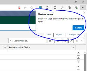 Assuming that this window is not identified with the Object Spy (is it?) and that test will be executed on the dedicated box, I would look for Edge setting that disables history and a prompt to restore previous session.