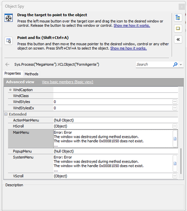 Hello, we are implementing automated tests in my company and I am analyzing how TestComplete behaves when reading our system. We are using TC 12.20. When reading a system window that I use with ObjectSpy, TestComplete closes the system and displays the following errors: