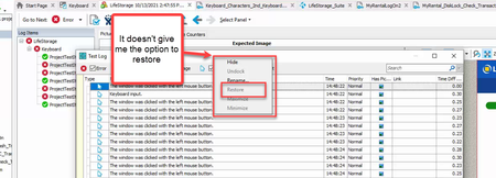 I somehow have undocked my testlog window and now I can't get it back.