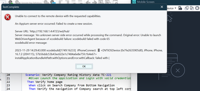 jyothi2New Contributor2 years agoiOS device connectionwhen i try to connect the device in testcomplete geeting an error as unable to launch webdriver agent because of xcode failureBut Xcode build passed when i build