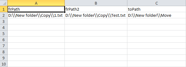from = KeywordTests.Test1.Variables.DB.Value("A"); to = "D:\\New folder\\Copy"; aqFileSystem.CopyFile(from, to, false);If you've set up your DB to use the first row as the column name, then you'll need to use Value("Path") ,