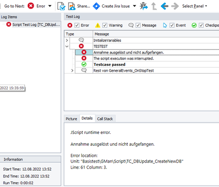 Then both messages e.g. "This should not be called..." will not be shown, as TestComplete will stop at Log.Error()