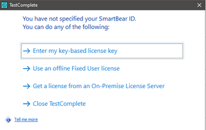 gopu619Frequent Visitor4 years agoIssue with license using SmartBear ID Hello There, My organization has purchased a Floating license for the TestComplete Desktop Module and ?TestComplete Platform. The Admin has also assigned me with a license in the license manager. ...Show More