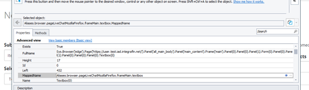 Hi all It seems that the object is getting wrongly mapped to a different alias. The object in below screen is by default getting mapped to 'Alias.browser.pageLiveChatMozillaFirefox.framemain.textbo...