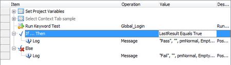 Since there is no return value from the called test without setting the Return operation, the last operation result is blank and is logged as such.