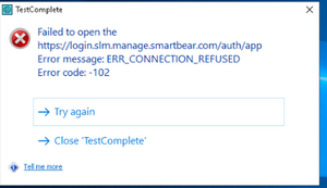 4 years agoAre you able to access that URL https://login.slm.manage.smartbear.com/auth/app on the machine that you are having trouble launching TC on?