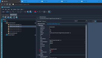 In Chrome, I've opened 5 tabs. When I look at the Object Browser, I can see tabs 1 - 4 are not visible and are greyed-out. However, tab 0 is visible. This is expected behaviour.