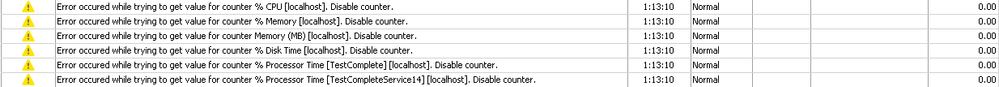 Error occured while trying to get value for counter % CPU [localhost]. Disable counter.