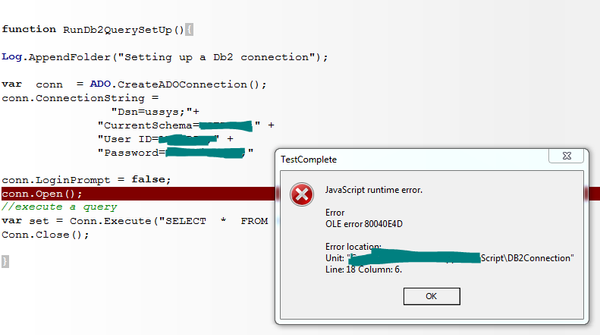 I then tried to create a DB Table variable for my project. Again, I tried to use an ODBC connection to the same database as I did for the store. I was able to connect to the database and I was able to see a list of tables. When I see the list of tables, it says at the top "Select a database table, view or query from which the DB Table variable will retrieve data.". When creating the store, I was able to specify a query. Here, it doesn't look like I can create a query. Also, if I select a table and click the View Table button, I get an error that says "Unable to display the table data. The following error occurred: [IBM][CLI Driver][DB2/NT]SQL0104N An unexpected token '* from' was found following 'select '. Expected tokens may include: '<value_expr_primary_or_stub>'. SQLSTATE=42601". I tried to use it in a script to see if it would work there. I tried to log the column count and I get pretty much the same message.