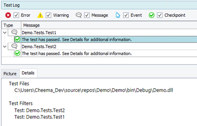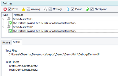 If I view the details of the execution for Test1, I can see that TestComplete has applied my filter for Test2, but has also applied its own filter for Test1. This results in both Test1 and Test2 being executed on this run.