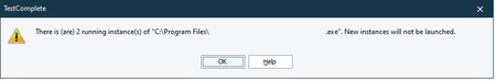 TestComplete version: 15.42.9.7 x64 I'd like to open 2 same desktop applications as we have some scenario testing multiple users. i'm getting this error message: There is (are) 2 running insta...