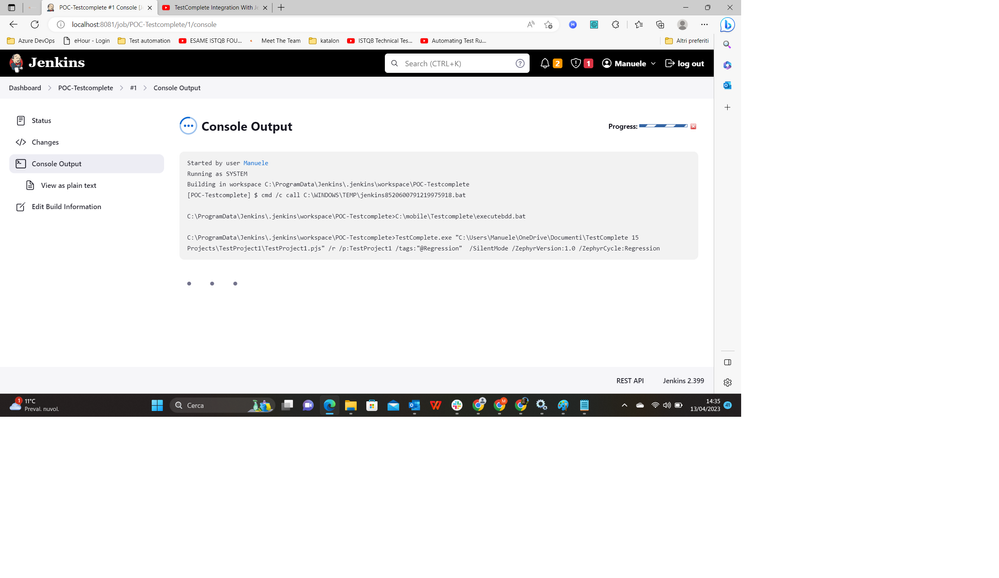 call C:\mobile\Testcomplete\executebdd.batEnsure the Jenkins user has appropriate permissions.