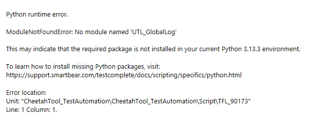 There's a known issue with Python 3.13 that comes with TestComplete v.15.77, discussed here TestComplete 15.77 is broken - dont upgrade | SmartBear Community , which has not been fixed yet.
