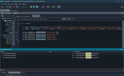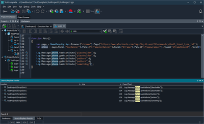 It seems basically no search feature works in TestComplete. Running a simple search for "sendButton" returns no results even though it's used a lot in our tests. "Find Usage" for aliases never returns any results. "Find Usage" for Script Tests actually shows results but they all show as being on Line 1 (so it halfway works). Anyone able to get search or Find Usage to work somehow?