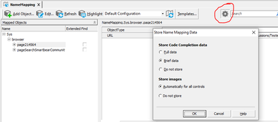 During test recording, TestComplete automatically captures images of mapped objects and adds them to the Name Mapping repository. If you do not want to store the images or if you need to decrease memory consumption, select Do not store in the Store images section of the Store Name Mapping Data dialog, in the Name Mapping editor:I do not see this option in the Name Mapping Editor
