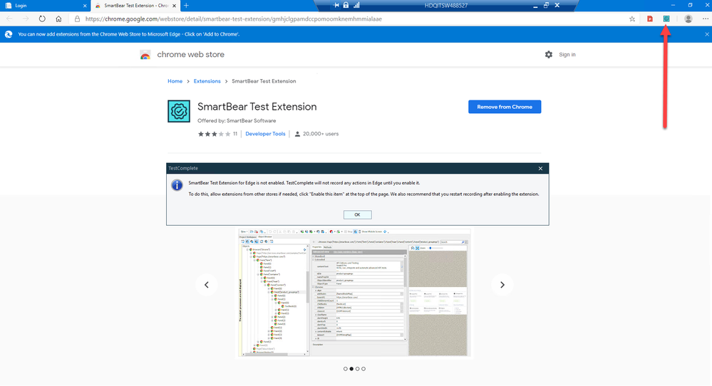 I am trying to install Test Complete Extension for Edge via this page . I enable the extension and be able to see the T.C. extension on the browser as shown in the attached picture. However, when trying to record a test, T.C pops up a message saying the SmartBear extension is not enabled.