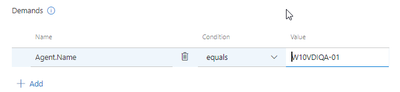 My site uses self hosted agents that are installed on VMs with Windows OS. To run my TestComplete automation scripts I create an Azure pipeline with a line in the Demands section as shown here that directs the execution to one specific agent installed on a single VM