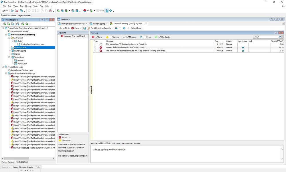 I created a project, recorded a Keyword test and applied a Data Driven Loop to the Keyword Test. I converted the Keyword test to Script [VBscript]. Everything has been working great. I deleted the original Keyword test since I am using the VBscript to execute my test.