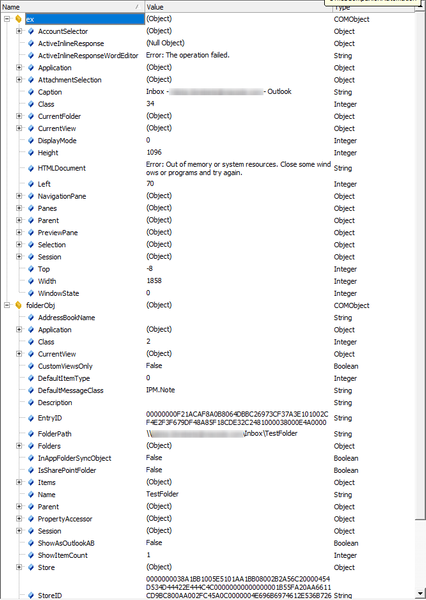 Hello Need to set current selected folder in Outlook 16 (and 13). The folder is a subfolder of Inbox. With TC11 I could do it the following way (JScript): var folder = 'TestFolder'; var folde...
