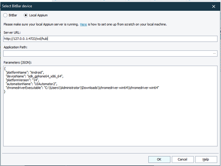 If BitBar is not an option, then I think that https://support.smartbear.com/testcomplete/docs/app-testing/web/supported-browsers/chrome-android.html and https://support.smartbear.com/testcomplete/docs/app-testing/mobile/device-cloud/configure-appium/index.html might inspire with some ideas (i.e. set up local Appium, make it possible to connect it to emulator and use local Appium to execute web test in TestComplete).