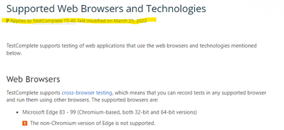 Was this made when 99 was the highest version, or or later versions of Edge not supported by Test Complete? It seemed to work at least partially with like 102.