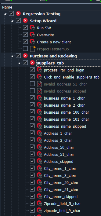 The two with an 'X' mark (unchecked), indicates you have a broken link, meaning those execution entities doesn't exist.