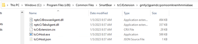 Here's how to check tcCrHost.exe - using step 3 here: https://support.smartbear.com/testexecute/docs/working-with/extending/messages/chrome-extension-is-not-installed.html?