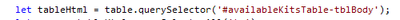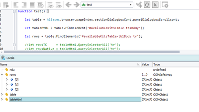 2. From the object, I get a HTML table (querySelector works as Expected)