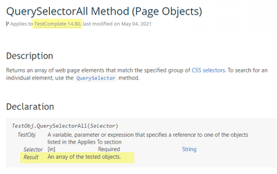 TestComplete QuerySelectorAll do not return Array (TC 14.80)