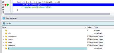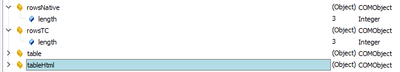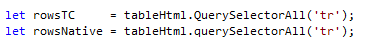 To answer to your question, indead I can not call any DOM Attributes, because rowsTC[i] and rowsNative[i] in loop returns undefined.