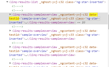 If I use an xpath to find all 'data-testid' items or the 'linq-results-sampleview' items it does not find them.