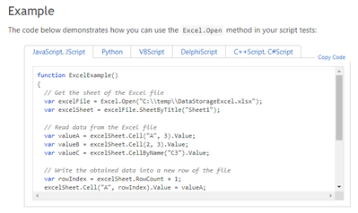fileLocation = Project.Path + "Test Data\DataSheet.xlsx" Log.Message(fileLocation) //excelFile = Excel.Open(fileLocation+"Test Data\DataSheet.xlsx") //excelSheet = excelFile.SheetByTitle["Test Data"]- csachanandaniOccasional Contributor