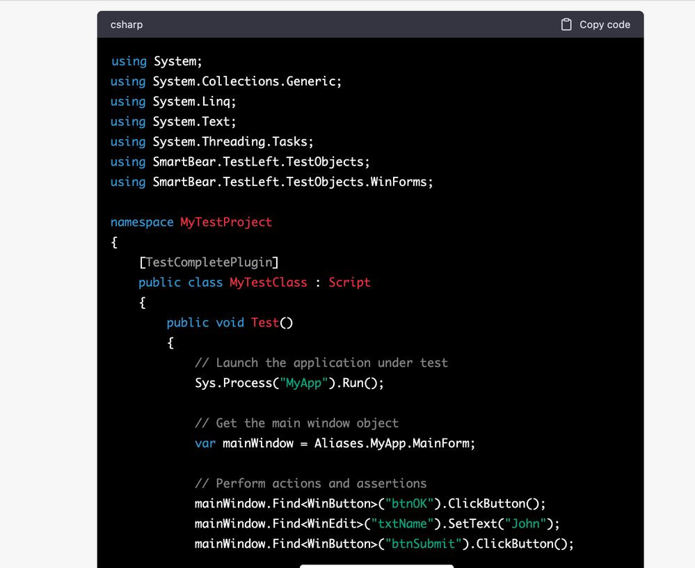 Reference Page: https://support.smartbear.com/testcomplete/docs/reference/language/csscript.html#:~:text=C%23Script%20is%20a%20specific,it%20to%20create%20new%20tests.